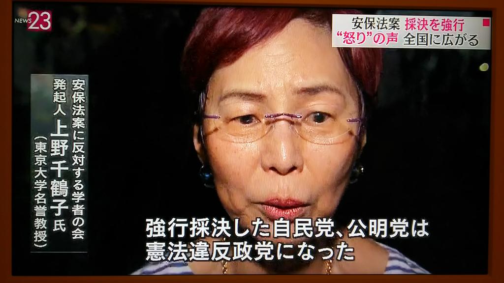 これは、詳細で元の投稿訪問用の 安全保障関連法に反対する学者の会 Twitterissa News23 安保関連法案特集の中で 安全保障関連法案に反対する学者の会 の学者 研究者の賛同者が15日に1万人を超えたことが紹介され 発起人の上野千鶴子さんのインタビュー 強行採決した自民党 公明党は憲法 のスニペット画像です。 ここに